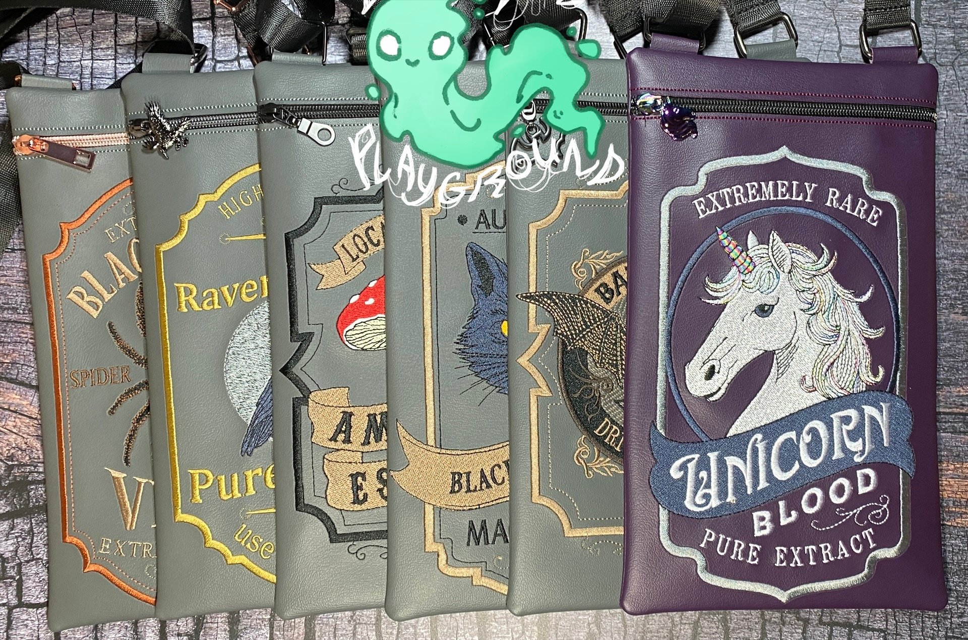 The Black Cat Hisses (The ApotheScary Collection) bag is approximately 7" Wx11" L. Each bag is made by me and I only have a limited number of each zipper pull and kind of zipper. The zipper pull and zipper may differ from the one shown in the picture. If you require specifics, please ask BEFORE ordering.