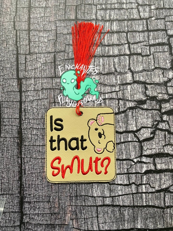 This bookmark is made of faux leather vinyl and polyester embroidery thread. Every bookmark is hand cut. A Tassel is hand applied for a finishing touch.